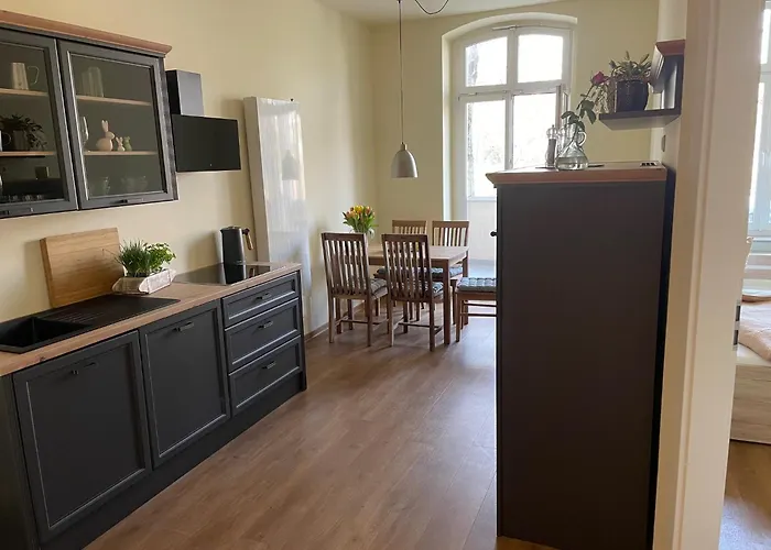 Для вашего комфортного пребывания в апартаментах предоставлена оснащённая всем необходимым кухня с электрочайником, духовкой и кухонной утварью. Аэропорт Эрфурта находится в 15 минутах езды, а автобусная остановка Strasse des Friedens — всего в 5 минутах ходьбы от этих просторных апартаментов.